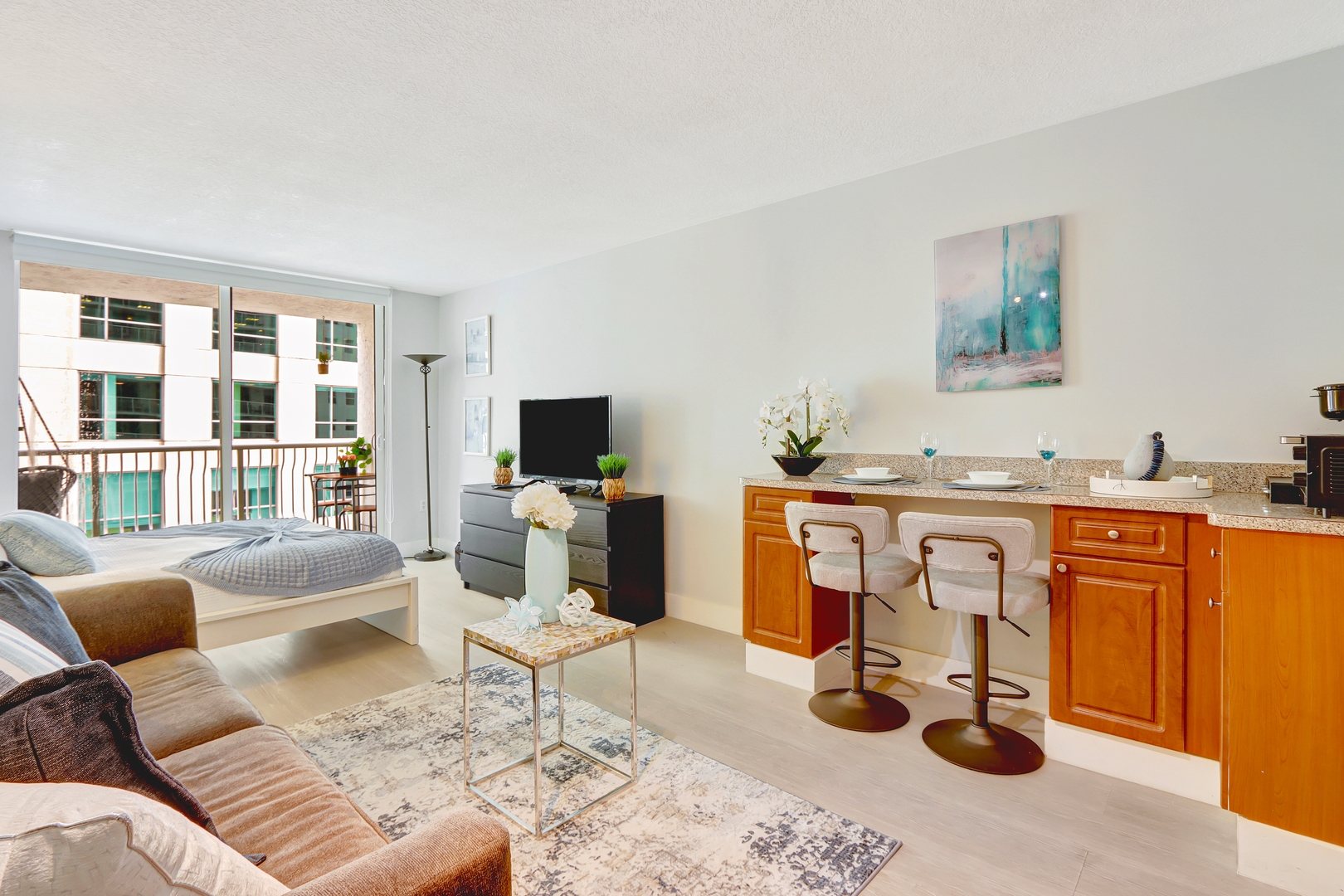 Steps away from Brickell City Centre and Mary Brickell Village with restaurants, bars, shops, and more. Experience the best of Miami in this stylish Studio Condo, located at 1200 Brickell Bay Drive. This space offers stunning views of the Brickell skyline and a partial bay view, making it the perfect urban retreat. The condo comfortably sleeps up to 2 guests, with 1 queen bed in the bedroom. The space Enjoy the convenience of 1 full bathroom, a fully equipped kitchen, and smart lock access for an easy, keyless check-in. You'll also have access to all building amenities, including a pool, gym, and more. Free parking is available for your stay. Whether you're visiting for business or pleasure, this prime location in the heart of Brickell offers easy access to the city's top restaurants, shops, and attractions. Book your stay today and make unforgettable memories in Miami! Guest access The space ➜ Pool, hot tub, game room and full-size gym ➜ Walk Score 95 (dining, nightlife, cafes, shopping within walking distance) ➜ Very safe neighborhood ➜ Children's playground area ➜ Poolside coffee shop ➜ Bedroom has full access to the balcony ➜ Unit features 2 cozy queen-size beds and a sofa bed (sleeps one person) in the living room. ➜ Full sets of hotel quality sheets and duvets for the beds and enough towels. ➜ High-speed Wi-Fi. ➜ Smart TV from which you can access your Netflix or YouTube. ➜ The kitchen is equipped with appliances including a large fridge and stove. ➜ One designated and secure parking spot Guest access ➤ All building amenities like pools, hot tub, gym, game room, and kids' playground are open and available to Airbnb guests. Pool/Jacuzzi are both open from 7am and closes at 6pm. ➤ Please note that although there is one parking spot. Parking garage is advised for Small SUVs and Sedans, anything larger than that may be difficult to get around. ➤ IMPORTANT NOTE: Please know that Air-conditioning unit is set to 72 and the unit should stay cool if the balcony door remains closed :) ➤ The building requires that we both sign and submit a short term lease form to register our guests, this form states the dates of your arrival and departure, name of the leas traveler, and that the guests will follow the building rules ➤ The property does have both heating and A/C but we don't guarantee that you can reach a comfortable setting if you're preferred temperature is outside of the range of about 65 - 75 degrees Fahrenheit. Additionally, given the nature of short term rentals, with people being in and out constantly, we can't guarantee 100% uptime as unfortunately some guests will occasionally push the systems beyond their capacity requiring repairs. ➤ Packages and mail : The concierge only accepts it during the time of your stay. The package is fine as long it is under the name of the primary guests during the registration/ the guests staying in the unit. Letter mail is not permitted, only packages. ➤ Please note that in this residential building, T-shirts and shoes must be worn at all times, and a respectful dress code is required in common areas. Other things to note Please be aware of the following check-in requirements: There is a $50 check-in fee which must be paid prior to your arrival. All guests are required to provide a government-issued photo ID before checking in. Thank you for your cooperation, and please reach out if you have any questions regarding these requirements!